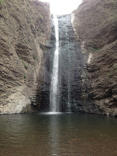 They threw rocks over and over and over while J and Sam looked for a path to the top of the fall